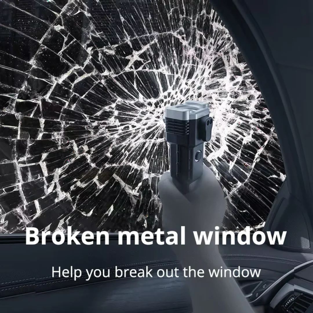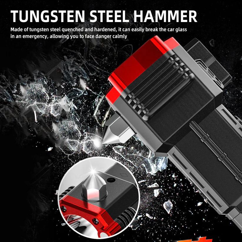 USB Charging Super Bright LED Flashlight With Safety Hammer Side Light Torch Portable Work Lights Outdoor Adventure Lighting